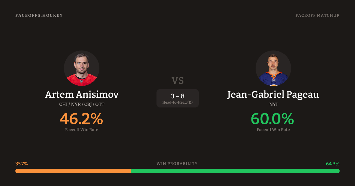Artem Anisimov vs Jean-Gabriel Pageau — Faceoff Head-to-Head
