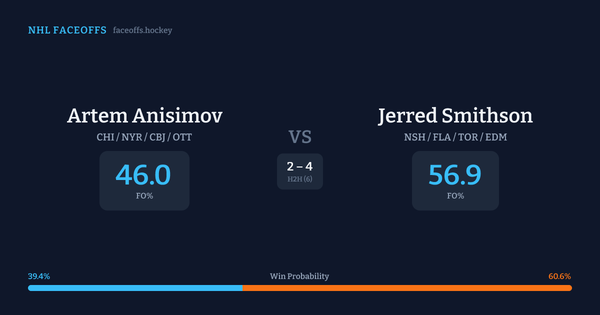 Artem Anisimov vs Jerred Smithson — Faceoff Head-to-Head