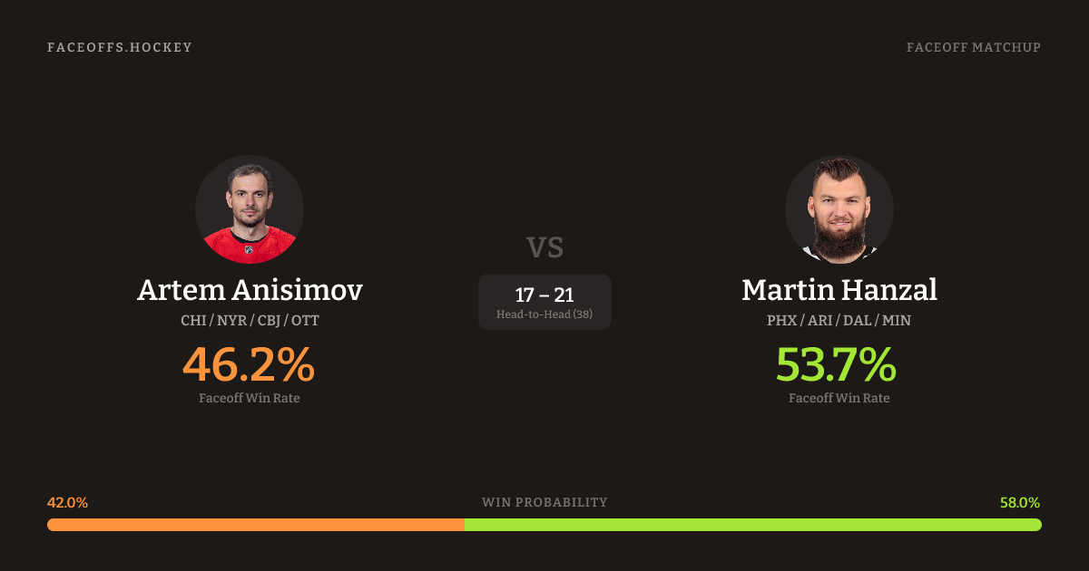 Artem Anisimov vs Martin Hanzal — Faceoff Head-to-Head