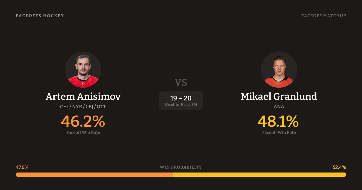 Artem Anisimov vs Mikael Granlund — Faceoff Head-to-Head