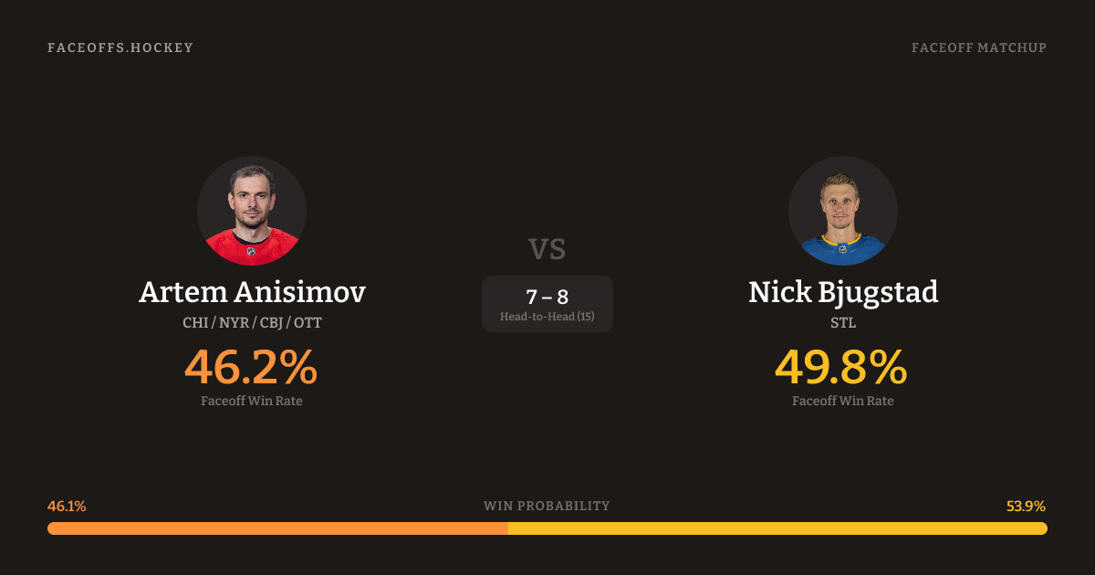 Artem Anisimov vs Nick Bjugstad — Faceoff Head-to-Head