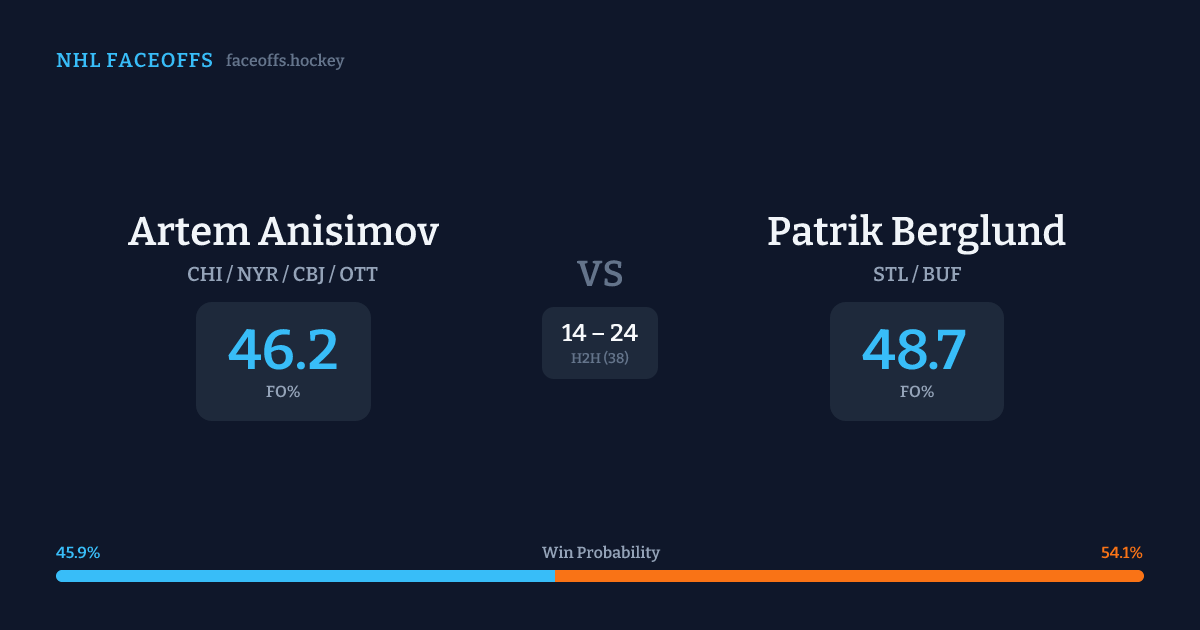 Artem Anisimov vs Patrik Berglund — Faceoff Head-to-Head