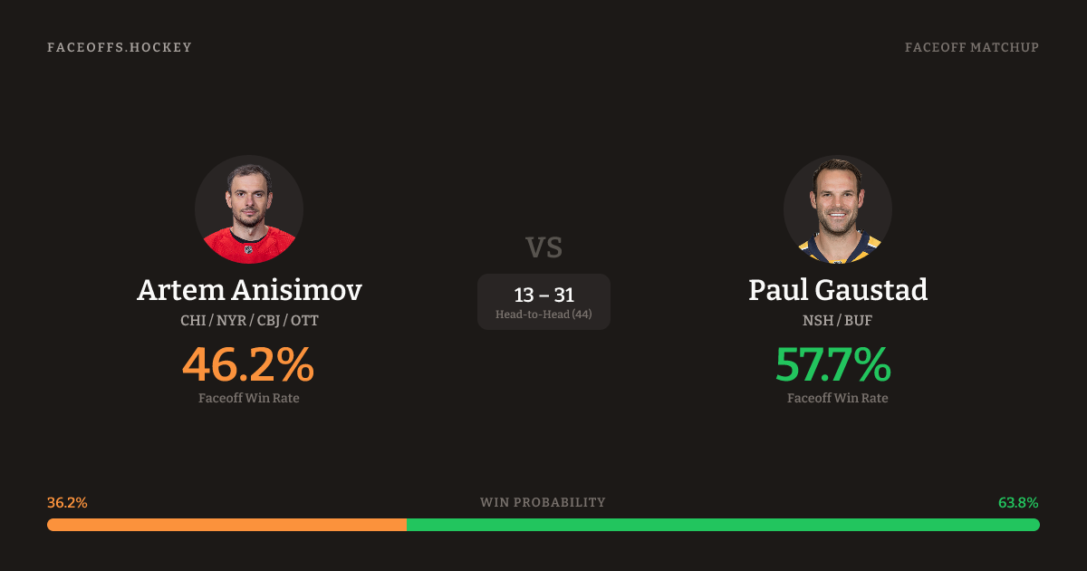 Artem Anisimov vs Paul Gaustad — Faceoff Head-to-Head