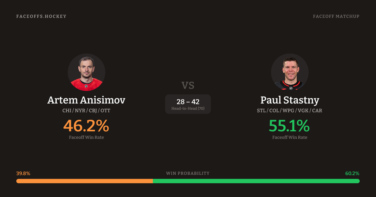 Artem Anisimov vs Paul Stastny — Faceoff Head-to-Head