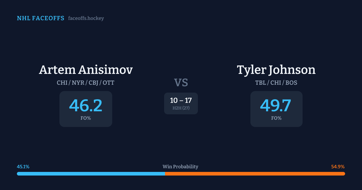 Artem Anisimov vs Tyler Johnson — Faceoff Head-to-Head