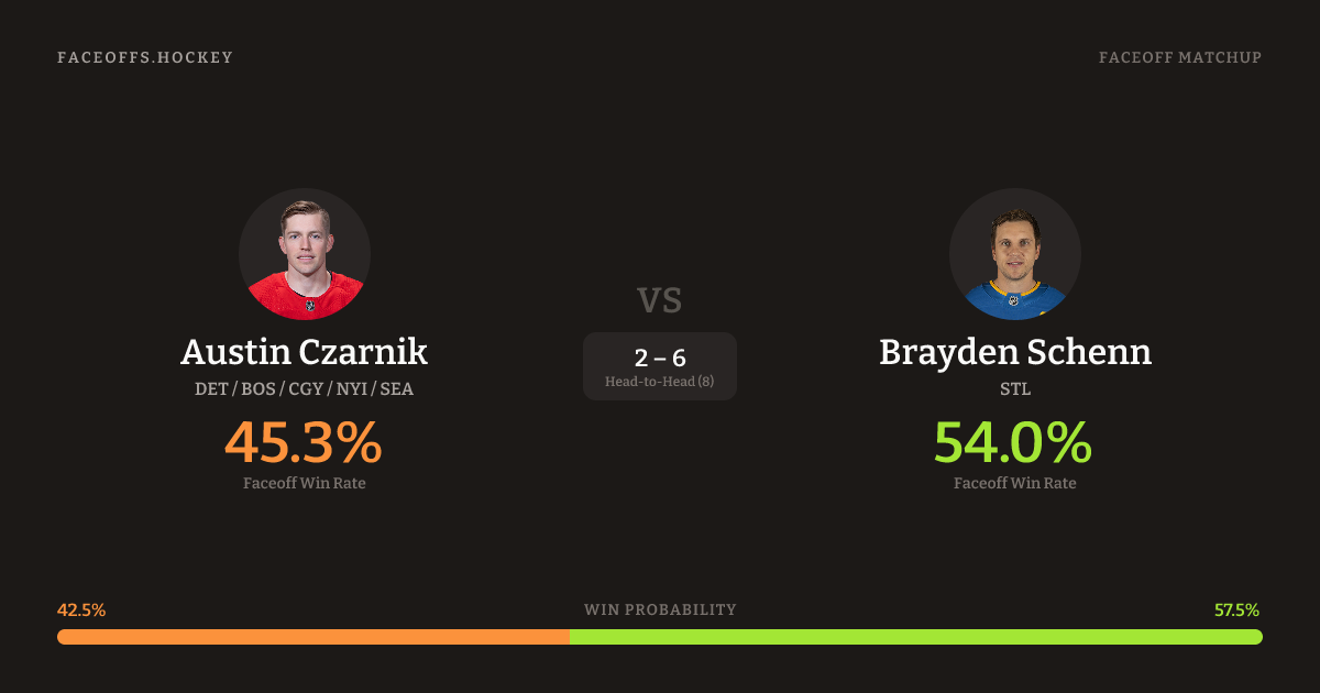 Austin Czarnik vs Brayden Schenn — Faceoff Head-to-Head