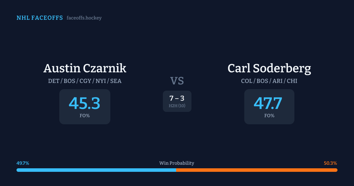 Austin Czarnik vs Carl Soderberg — Faceoff Head-to-Head