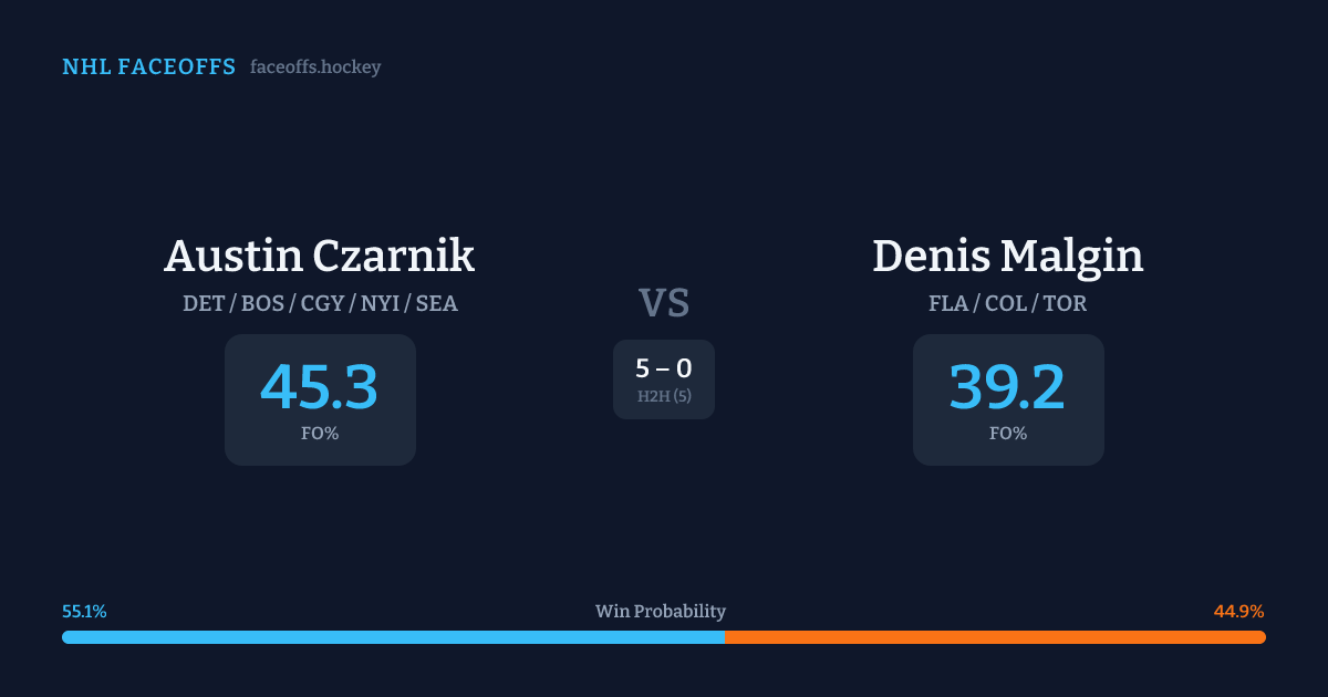 Austin Czarnik vs Denis Malgin — Faceoff Head-to-Head