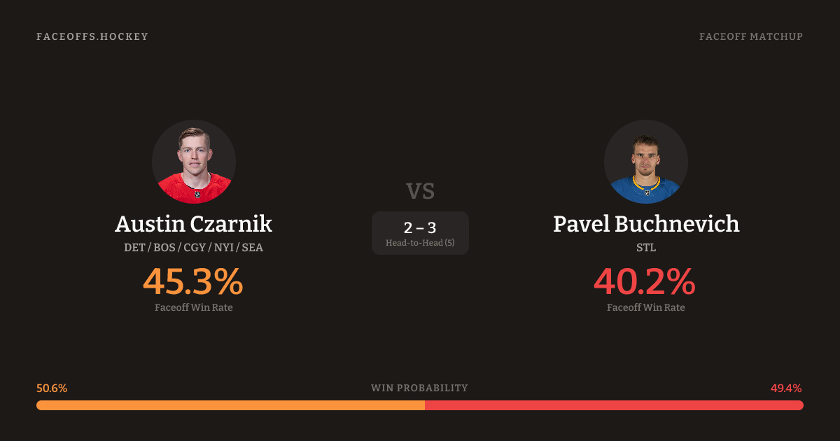 Austin Czarnik vs Pavel Buchnevich — Faceoff Head-to-Head