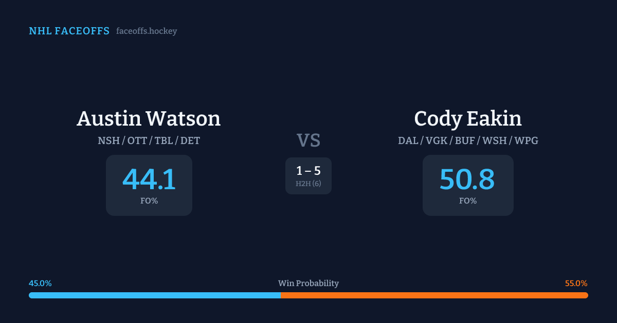 Austin Watson vs Cody Eakin — Faceoff Head-to-Head
