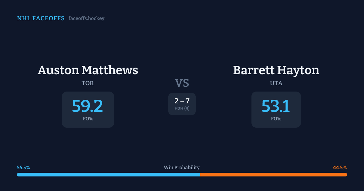 Auston Matthews vs Barrett Hayton — Faceoff Head-to-Head