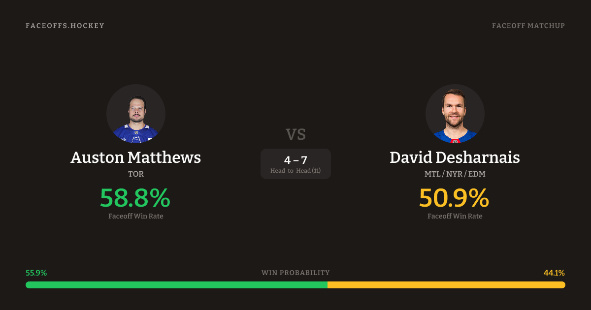 Auston Matthews vs David Desharnais — Faceoff Head-to-Head
