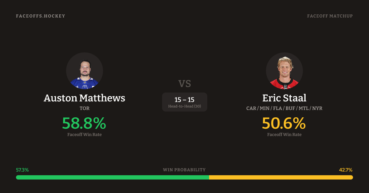 Auston Matthews vs Eric Staal — Faceoff Head-to-Head