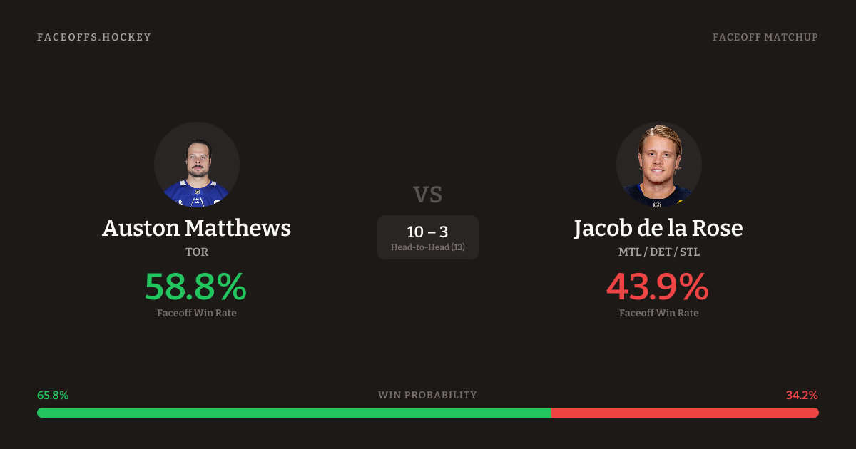 Auston Matthews vs Jacob de la Rose — Faceoff Head-to-Head