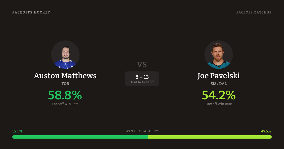 Auston Matthews vs Joe Pavelski — Faceoff Head-to-Head