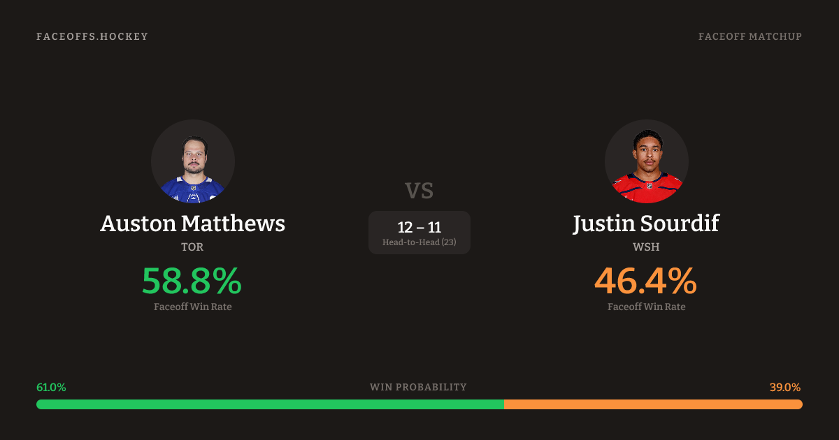 Auston Matthews vs Justin Sourdif — Faceoff Head-to-Head