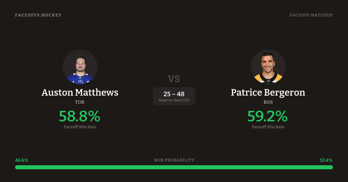 Auston Matthews vs Patrice Bergeron — Faceoff Head-to-Head