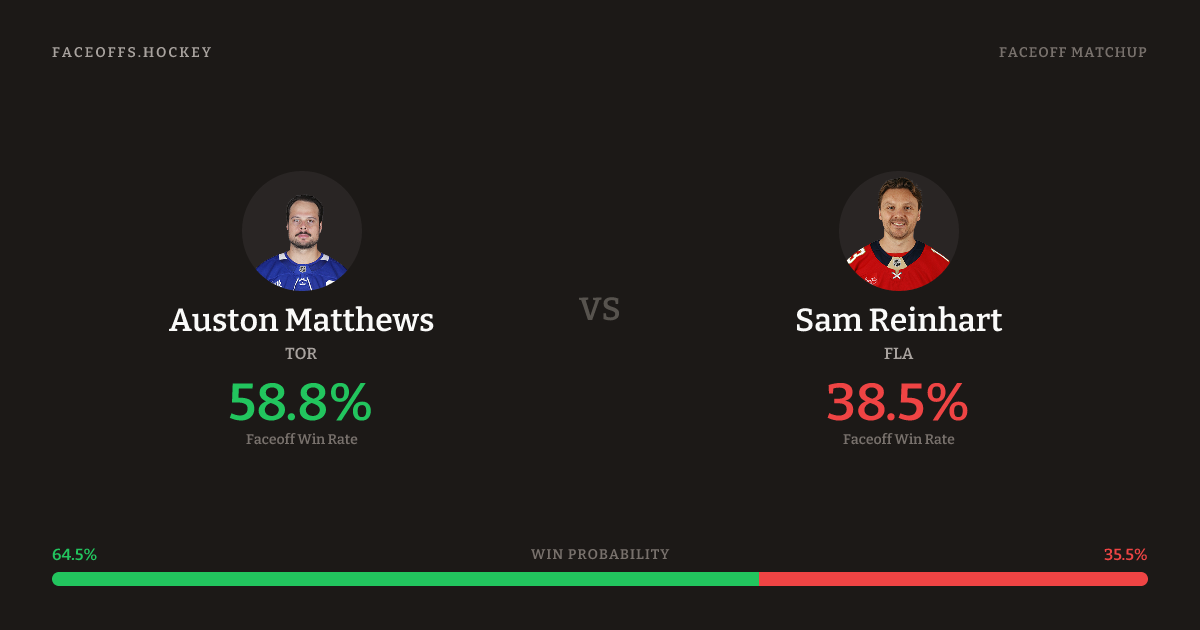 Auston Matthews vs Sam Reinhart — Faceoff Head-to-Head