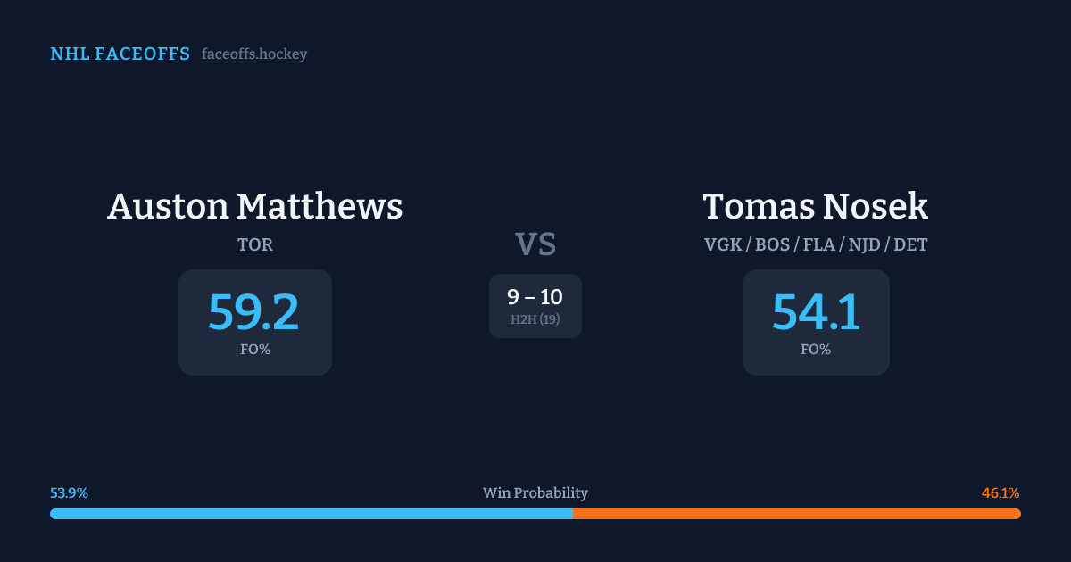 Auston Matthews vs Tomas Nosek — Faceoff Head-to-Head
