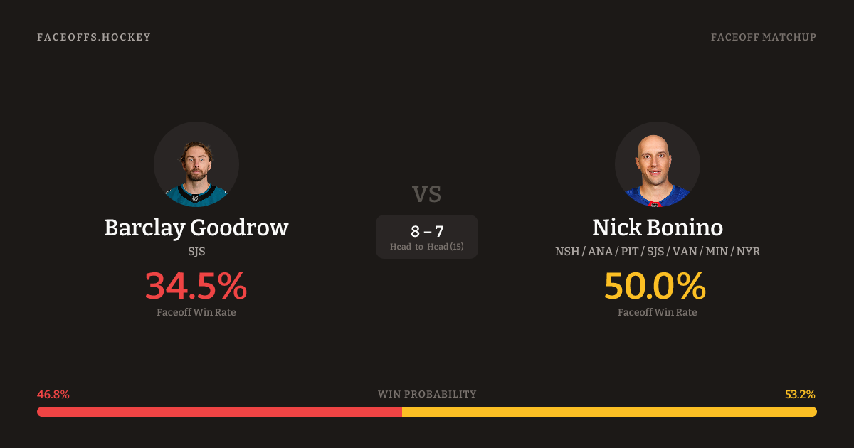 Barclay Goodrow vs Nick Bonino — Faceoff Head-to-Head