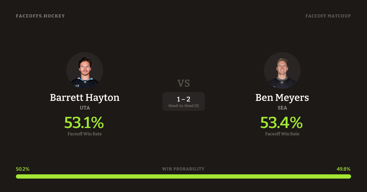 Barrett Hayton vs Ben Meyers — Faceoff Head-to-Head