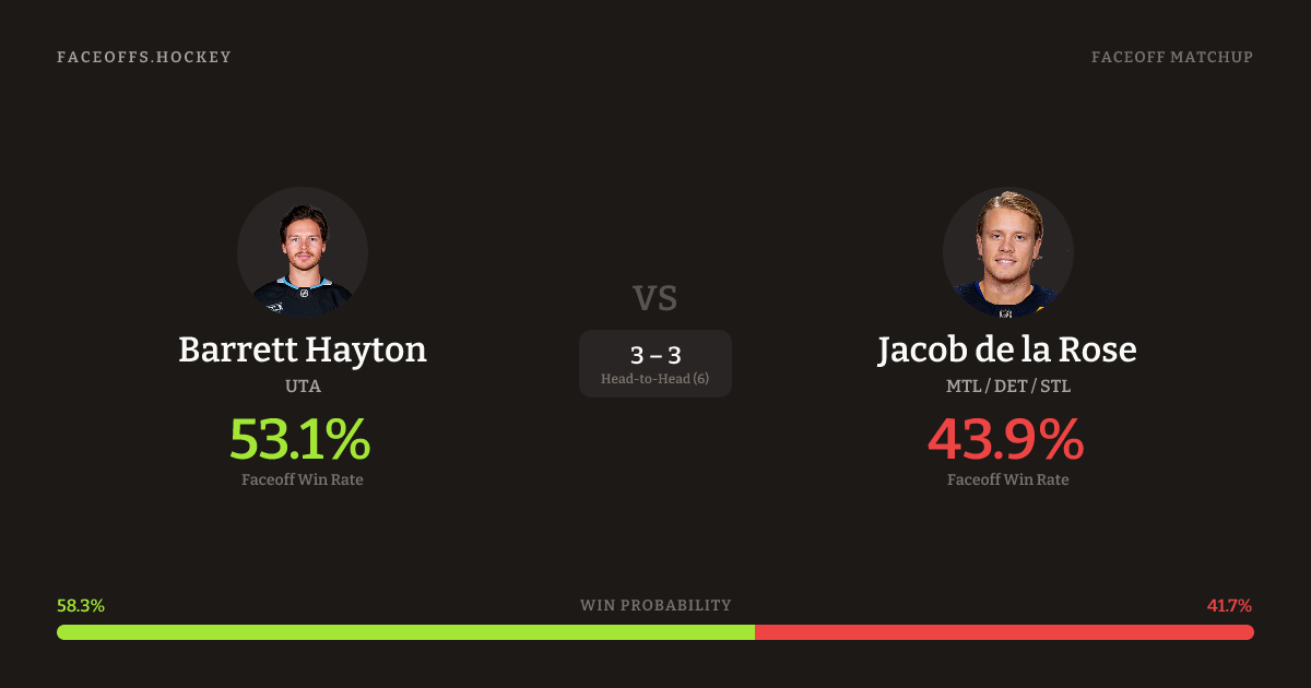 Barrett Hayton vs Jacob de la Rose — Faceoff Head-to-Head