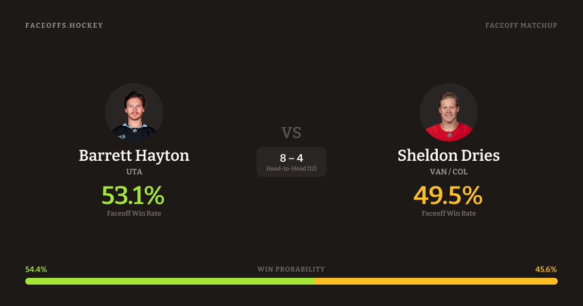 Barrett Hayton vs Sheldon Dries — Faceoff Head-to-Head