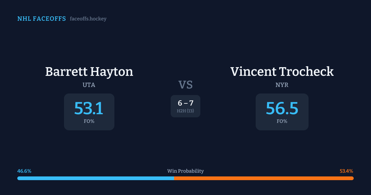 Barrett Hayton vs Vincent Trocheck — Faceoff Head-to-Head