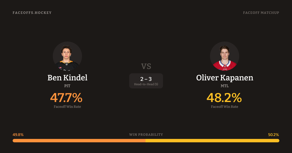 Ben Kindel vs Oliver Kapanen — Faceoff Head-to-Head