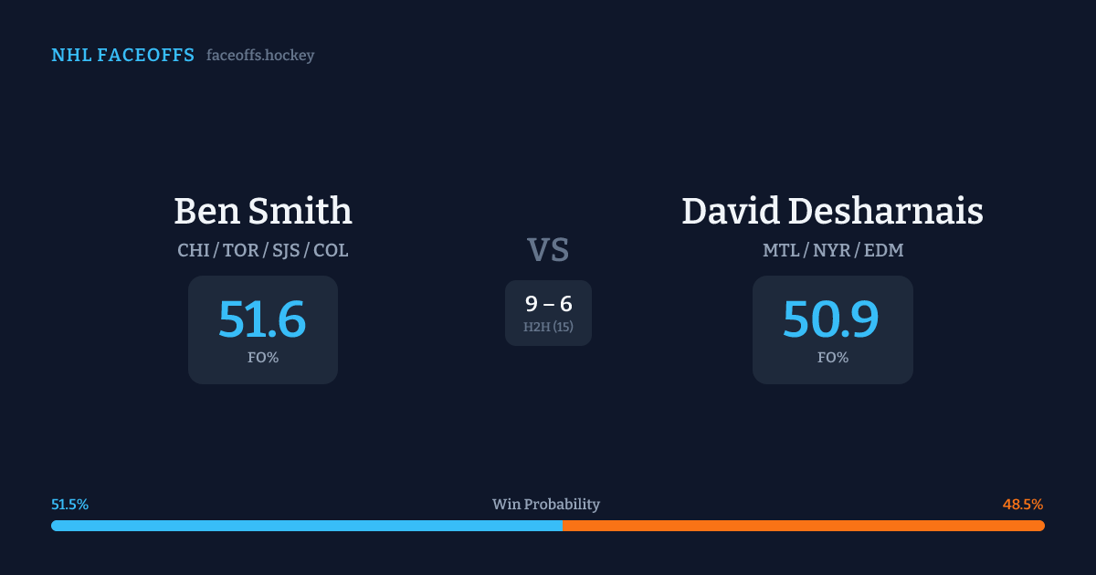 Ben Smith vs David Desharnais — Faceoff Head-to-Head