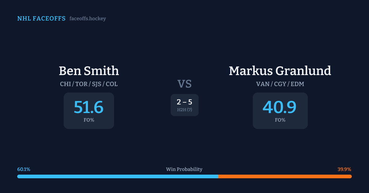 Ben Smith vs Markus Granlund — Faceoff Head-to-Head