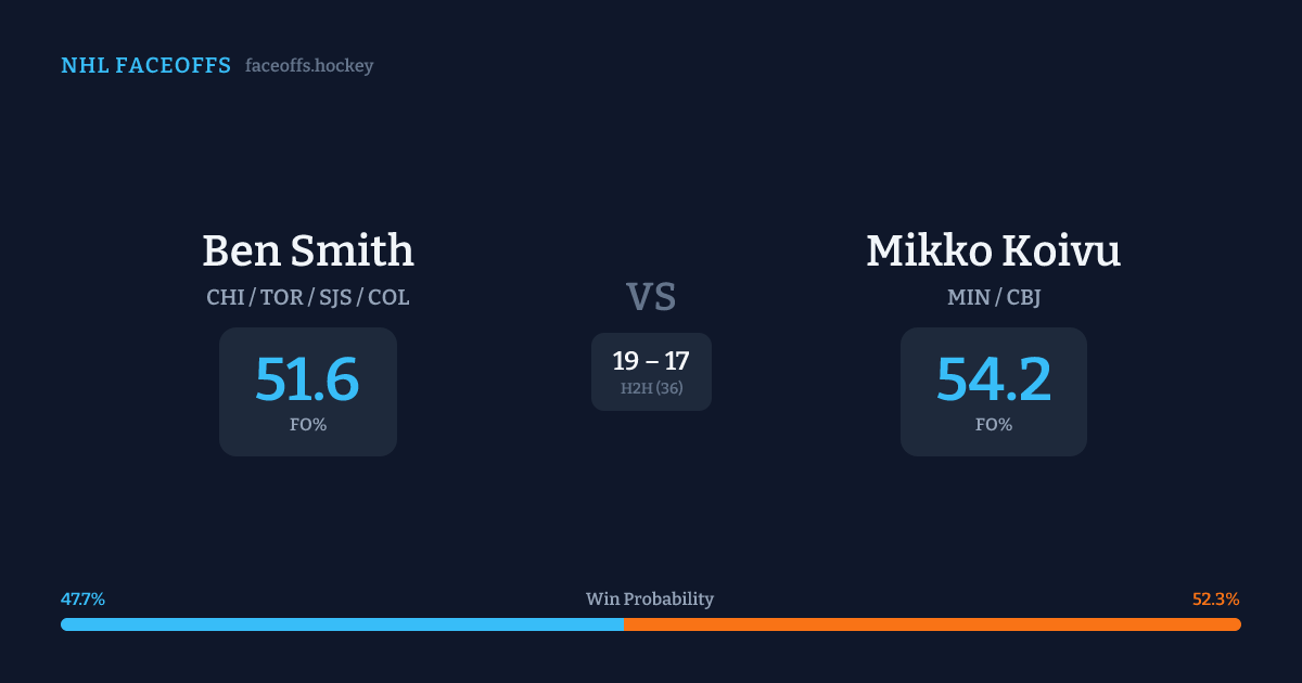 Ben Smith vs Mikko Koivu — Faceoff Head-to-Head
