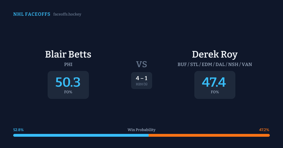 Blair Betts vs Derek Roy — Faceoff Head-to-Head