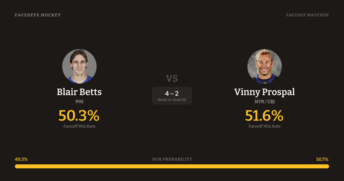 Blair Betts vs Vinny Prospal — Faceoff Head-to-Head