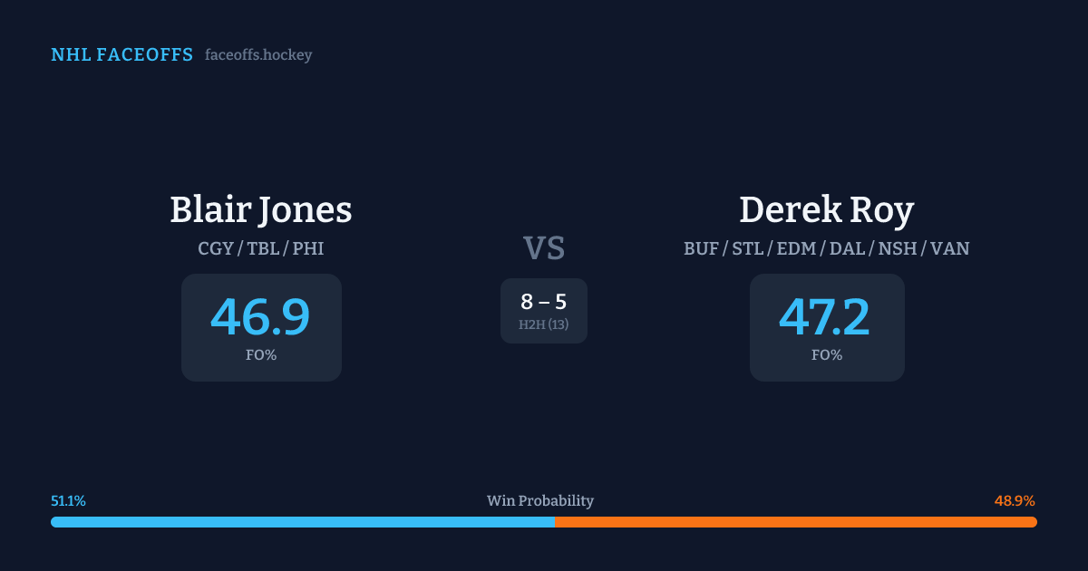 Blair Jones vs Derek Roy — Faceoff Head-to-Head