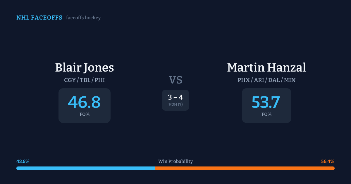 Blair Jones vs Martin Hanzal — Faceoff Head-to-Head