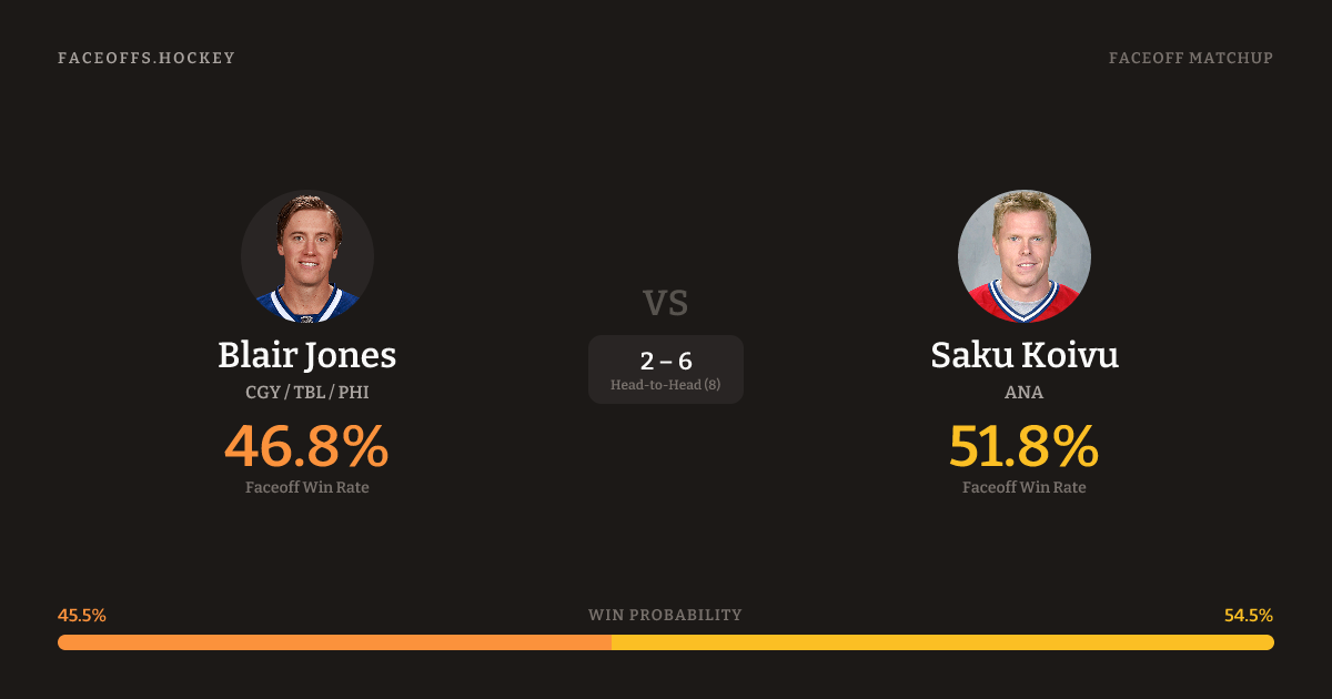 Blair Jones vs Saku Koivu — Faceoff Head-to-Head