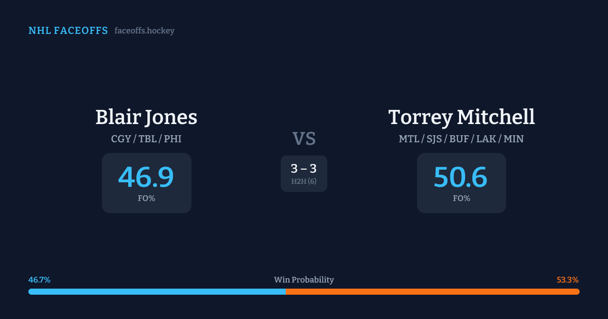 Blair Jones vs Torrey Mitchell — Faceoff Head-to-Head