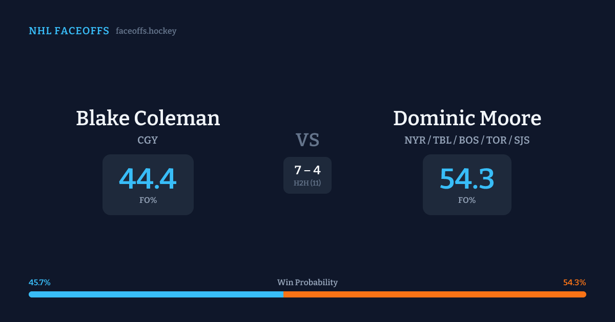Blake Coleman vs Dominic Moore — Faceoff Head-to-Head