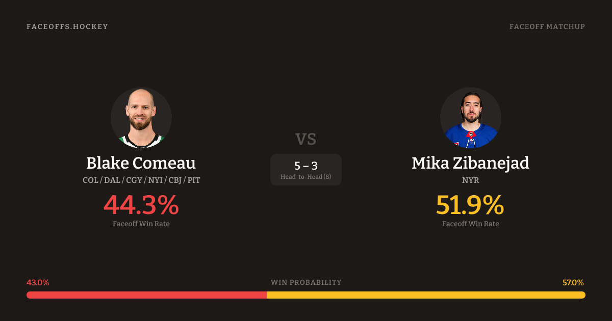 Blake Comeau vs Mika Zibanejad — Faceoff Head-to-Head