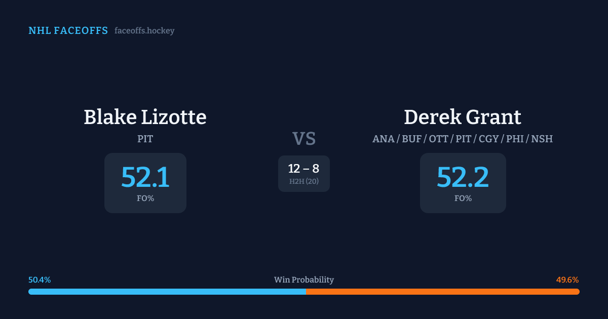 Blake Lizotte vs Derek Grant — Faceoff Head-to-Head