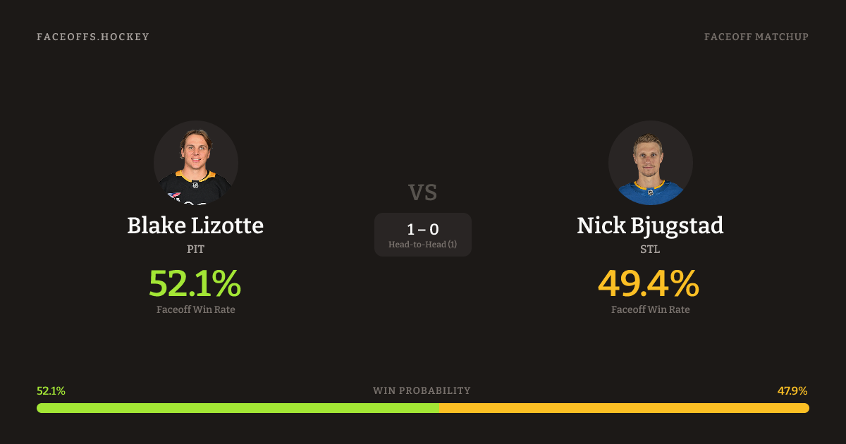 Blake Lizotte vs Nick Bjugstad — Faceoff Head-to-Head