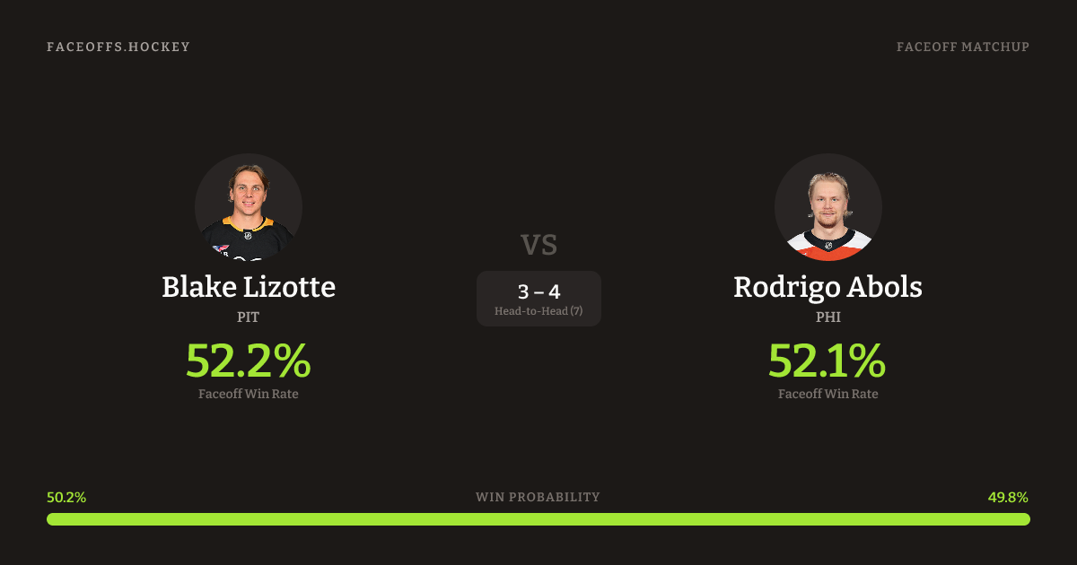 Blake Lizotte vs Rodrigo Abols — Faceoff Head-to-Head
