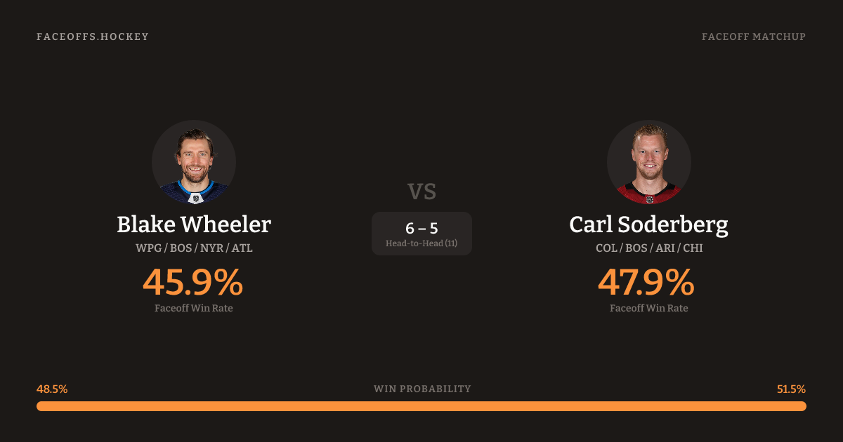 Blake Wheeler vs Carl Soderberg — Faceoff Head-to-Head