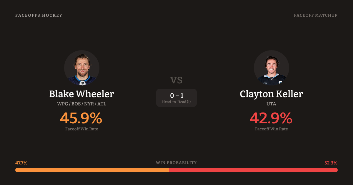 Blake Wheeler holds a +5.1% FO% edge overall.