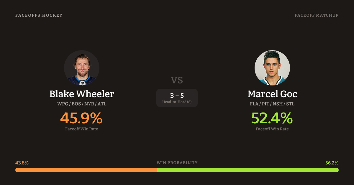 Blake Wheeler vs Marcel Goc — Faceoff Head-to-Head