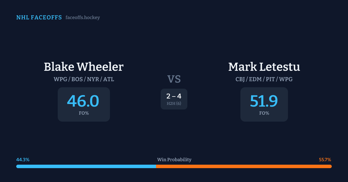 Blake Wheeler vs Mark Letestu — Faceoff Head-to-Head