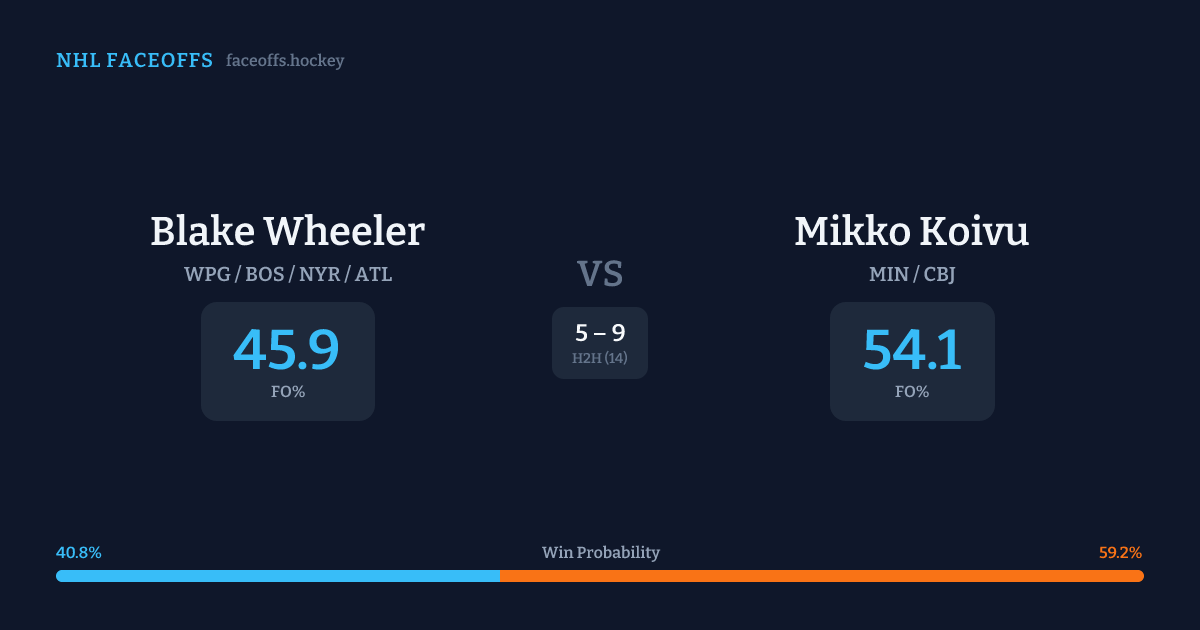 Blake Wheeler vs Mikko Koivu — Faceoff Head-to-Head