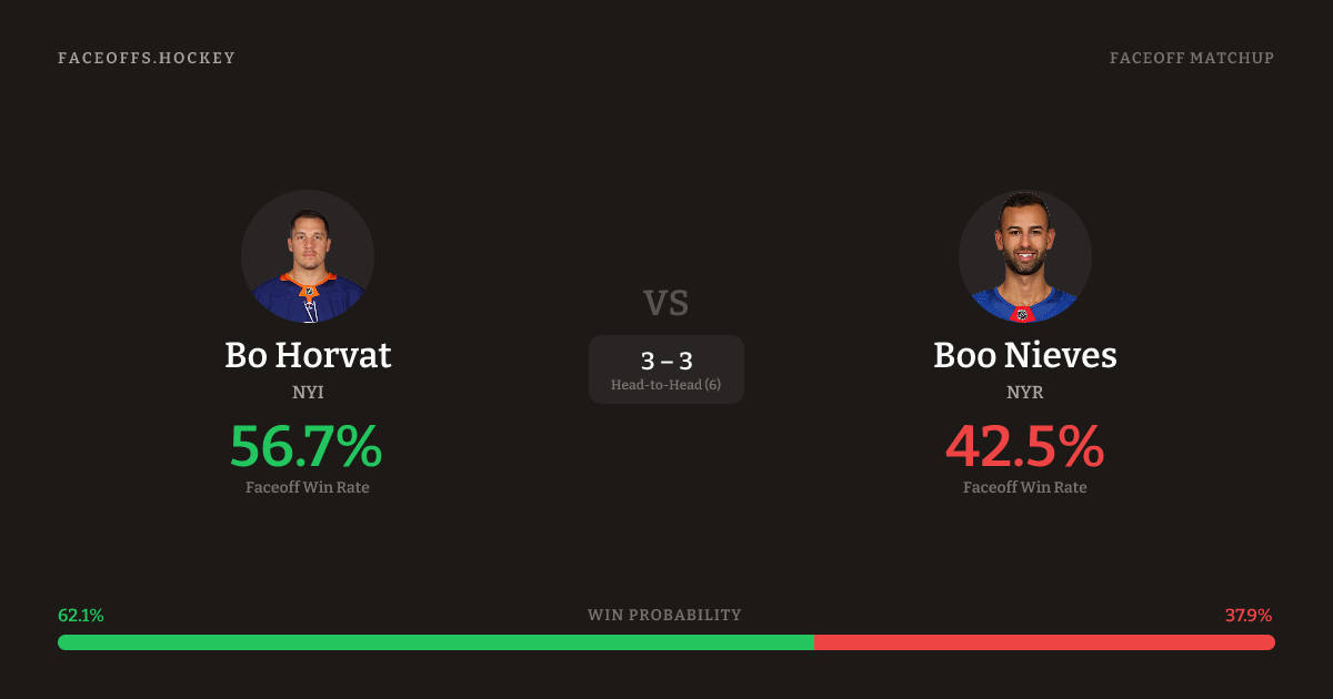 Bo Horvat vs Boo Nieves — Faceoff Head-to-Head