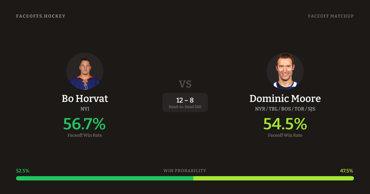 Bo Horvat vs Dominic Moore — Faceoff Head-to-Head